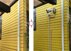 左の画像は、弊社直受け工事の、防犯カメラの取り付け前と取り付け後の同一場所での画像です。